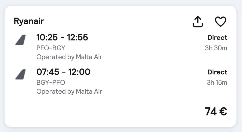 - Return: 20 May (Milan → Larnaca)